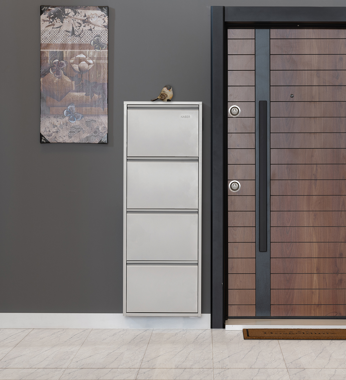 Metal ayakkabılığınızın seçimini yaparken kapınızın, koridor ve duvar renginizi dikkate alarak renk belirlemenizi öneririz. Metal ayakkabılıklarımız her bir kapak için ikişer çift ayakkabı yahut terlik alacak kapasiteye sahiptir. Dolayısıyla her aile ve her ev için farklı sayıda bölmeli ürün satıştadır.